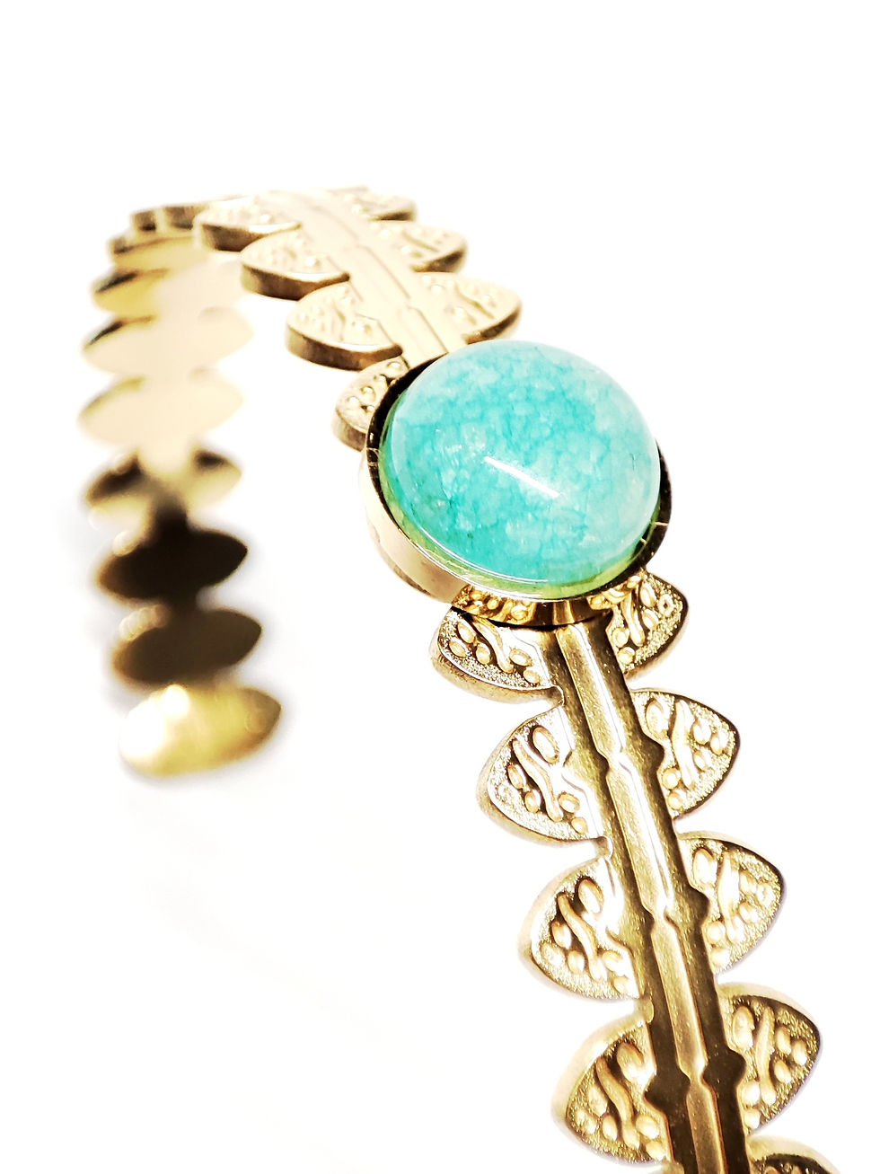 Bracelet Jonc doré à l'or fin Agate bleu turquoise